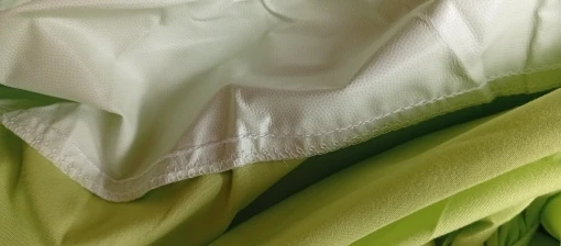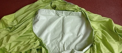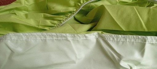 Mattress cover. Waterproof version. And I think that's indeed the case because the upper part is covered with something made of synthetic material from below. It should not leak fluids. On the other hand, I'm afraid that this layer will prevent air from passing through, so it will heat from the bottom. We'll see in practice. At the moment, I can only say that the color of the front and the color of the sides are slightly different. It's supposed to be the same, but the shade is different. However, it is not noticeable.